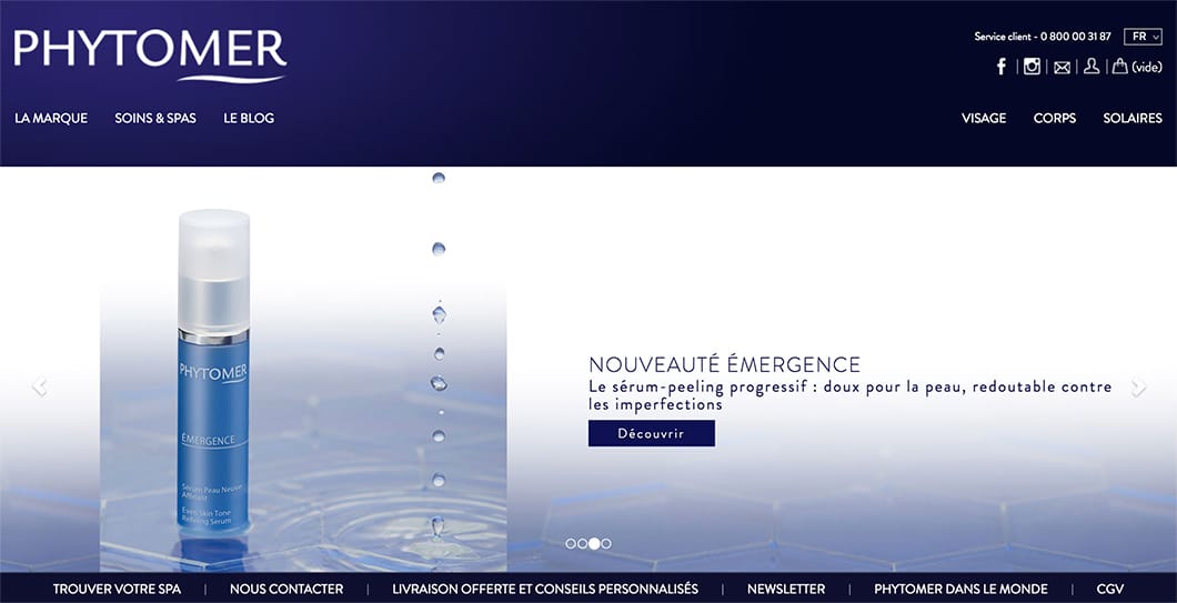 Средства PHYTOMER не продаются со скидкой на дисконтных интернет-сайтах. Их могут распространять только профессионалы. На нашем сайте www.phytomer.fr представлены наши партнеры и наш опыт. Сайт одновременно является интернет-магазином: мы рекомендуем тем, кто заказывает товар онлайн, прийти для его получения и оплаты в точку продаж. Программа «из интернета в магазин» дает вам многочисленные преимущества: ваш бизнес получает дополнительный доход, у вас повышается товарооборот, и в ваш косметический кабинет приходят новые клиенты.
