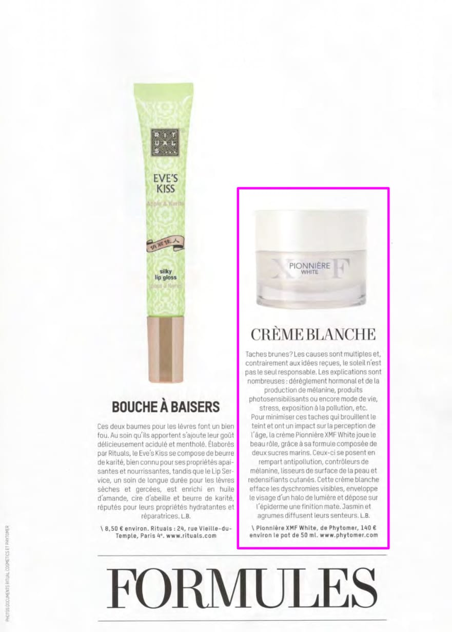 Компания PHYTOMER объединил 2 вида биотехнологического морского сахара в составе нежного крема, который оказывает тройное действие: улучшает цвет кожи, убирает отеки под глазами и сглаживает морщины. PIONNIÈRE XMF WHITE мгновенно делает цвет лица более светлым и разглаживает видимые морщины в течение одного месяца. День за днем пигментные пятна становятся менее выраженными, а кожа делается более прозрачной и заметно более молодой и сияющей.