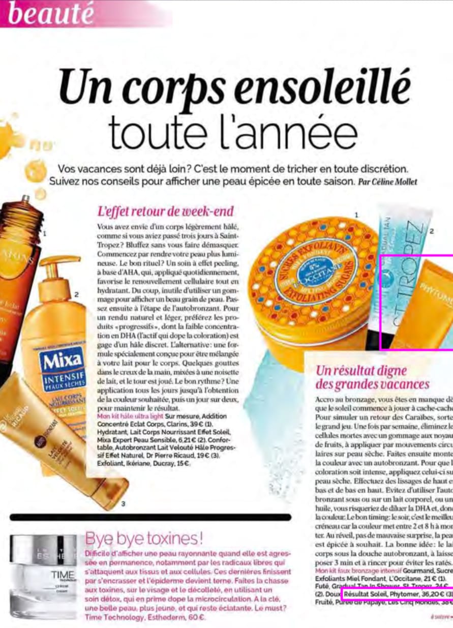 «Средство очень милое, легко наносится, имеет приятную текстуру, и, как любой крем для искусственного загара, требует тщательности при нанесении. У него приятный запах. На лицо я в первую очередь наношу сыворотку: у меня очень сухая кожа, и для меня такой вариант является наиболее комфортным. У меня очень белая кожа на теле, поэтому для достижения желаемого результата я использую его ежедневно. 'EXUPERY — Источник: www.beaute-test.com »