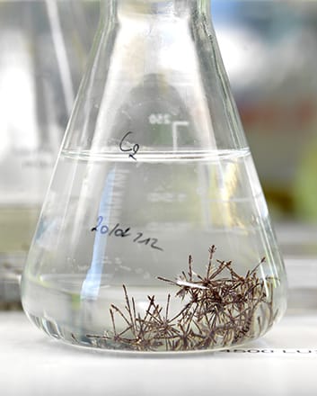Мы выращиваем редкие или наиболее хрупкие водоросли прямо в море (кордовый метод) или в лаборатории (фото-биореактор).